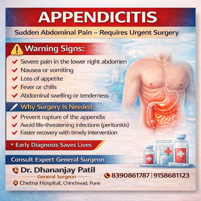 • Appendicitis – Sudden Abdominal Pain Requiring Urgent Surgery | Dr. Dhananjay Patil, General Surgeon, PuneJanuary 1, 2026