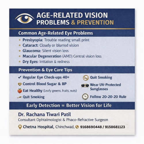 Expert Advice by Dr. Rachana Tiwari Patil, Chetna Hospital As we age, our eyes undergo natural changes that can impact our vision. While some changes are normal,