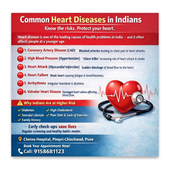 At Chetna Hospital, Pimpri-Chinchwad, Pune, expert cardiology care is provided under the guidance of experienced doctors like Dr. Mahesh Kharade and Dr. Pritam Titar, focusing on early diagnosis, preventive cardiology, and long-term heart health.