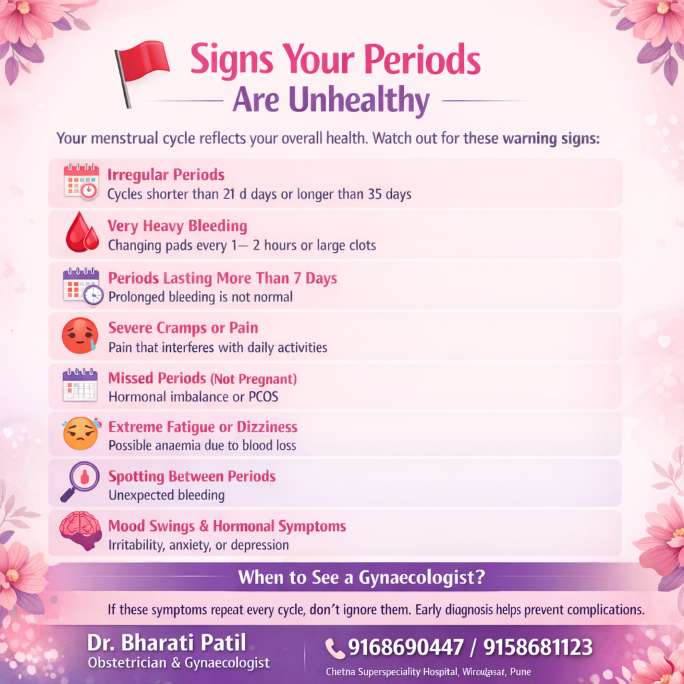 Menstrual health is a vital aspect of a woman’s overall well-being. Regular, manageable periods are usually a sign that your body is functioning normally, but certain symptoms may indicate underlying health issues. Understanding what is normal and what is not can help prevent long-term complications. In this blog, we will discuss the signs of unhealthy periods, common causes, and why consulting a gynaecologist in Chinchwad or nearby areas like Sambhajinagar, Wakad, Thergaon, Ravet, Punawale, and Chikhali is important.
