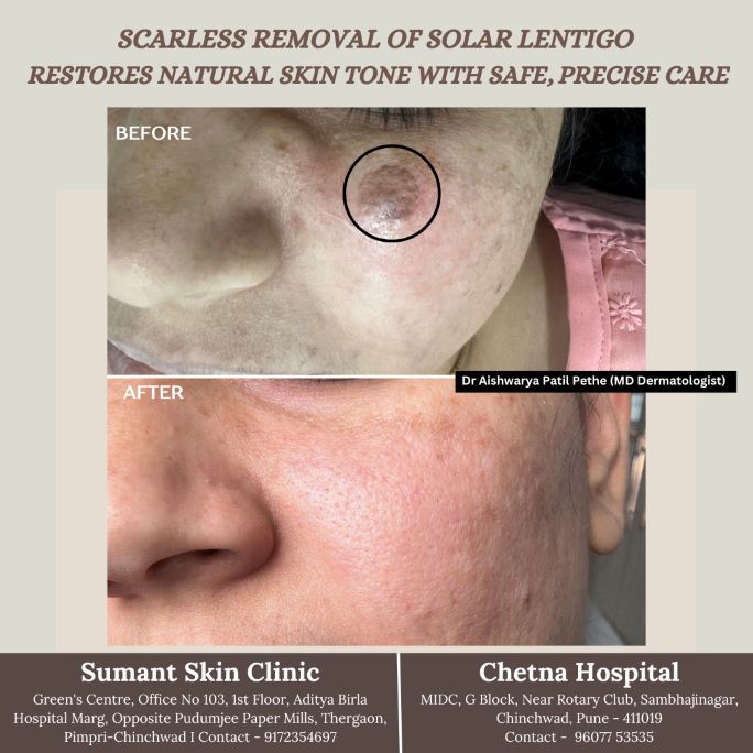 Solar lentigo, commonly known as sun spots, can be removed safely and without scarring using advanced dermatology treatments. This precise, targeted procedure clears dark spots while preserving your natural skin tone. Achieve smooth, bright, and even skin with our scarless Solar Lentigo removal. Book your consultation today.