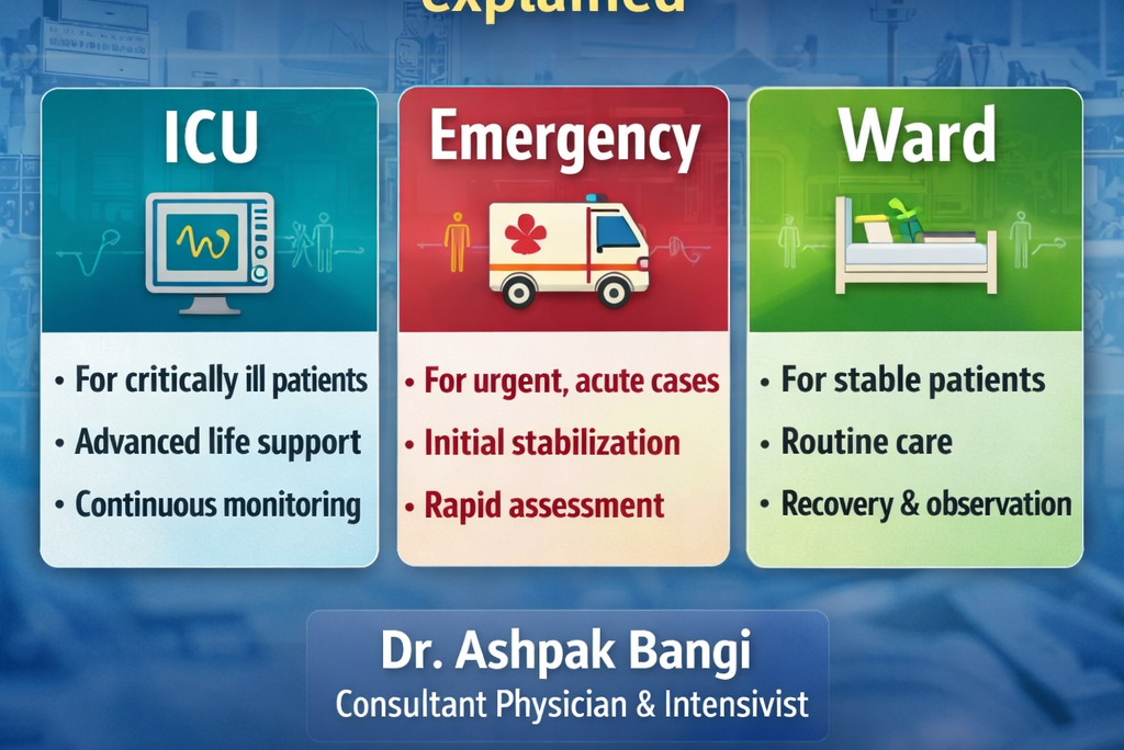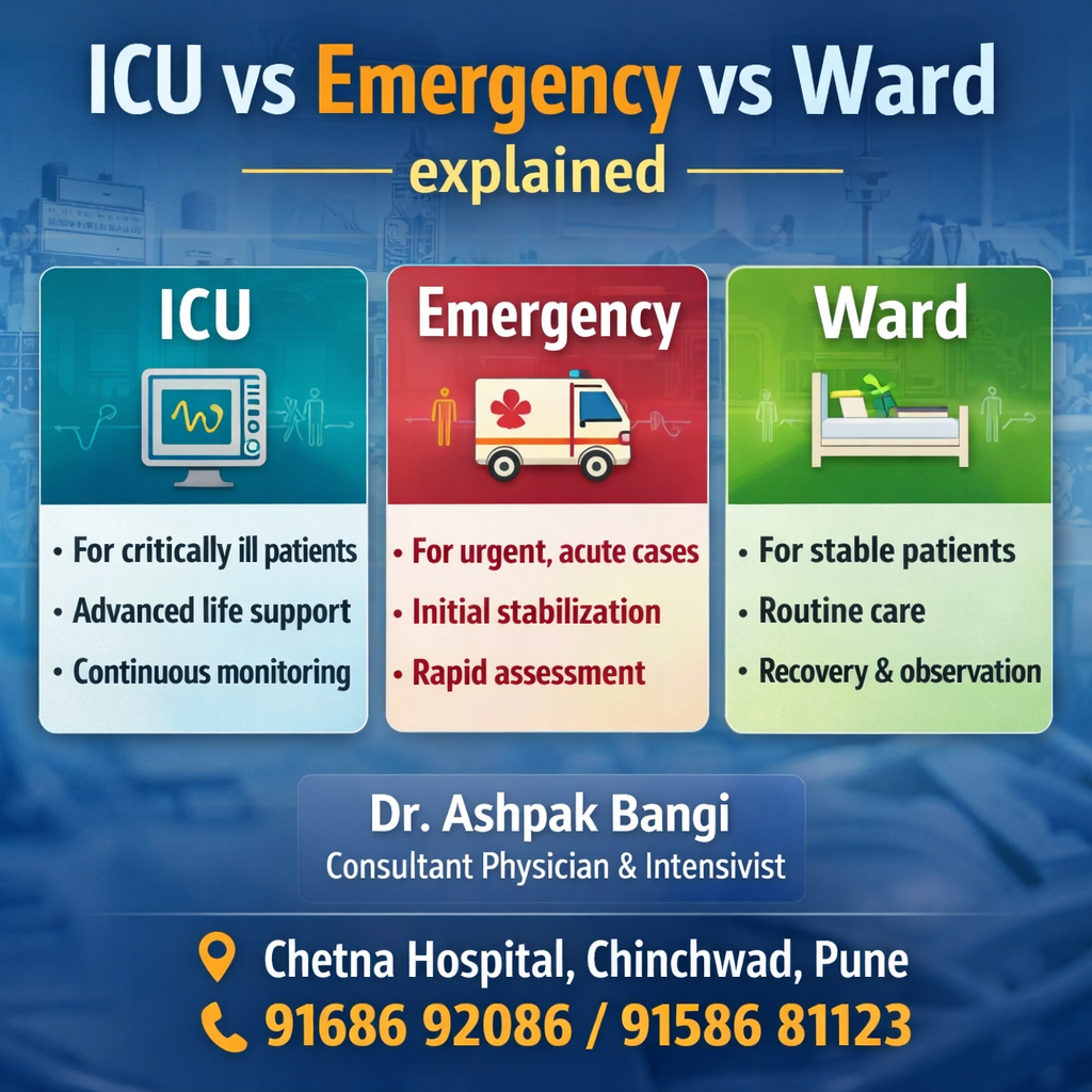 Many patients and families are often confused about the difference between ICU, Emergency, and Ward care. Here’s a clear breakdown: