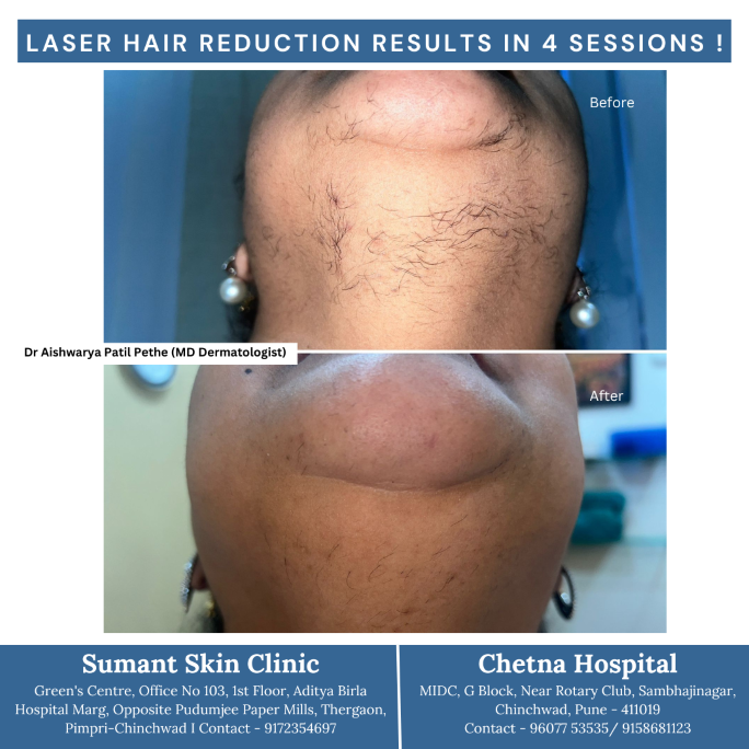 Visible transformation in just 4 LHR sessions! Reduced hair growth, smoother skin, and long-lasting clarity without waxing or shaving hassles. Our advanced laser technology ensures safe, effective, and comfortable results for all skin types. Start your journey to smooth, confident skin today.
